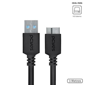 Este cabo permite conexão entre computadores e HDs e SSDs externos de diversas marcas com conexão através de porta Micro USB B