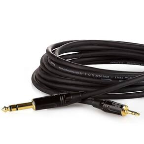 O Cabo com conectores TRS pode ser para enviar sinal de áudio do desktop ou laptop para um canal de entrada da mesa de som. Conecte dispositivos de áudio não em uma mesa de som.