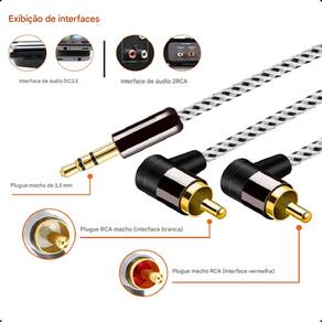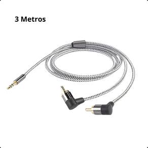 - Cabo P2 Macho reto 3.5mm para 2 RCA macho ângulo 90 graus Comprimento 3 Metros