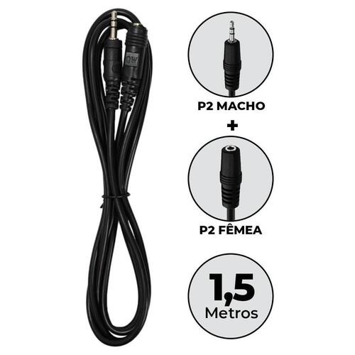 Cabo P2macho X P2femea 1,5m Ótima Qualidade Audio Som Cabo Extensor P2macho x P2femea 1,5 Metros