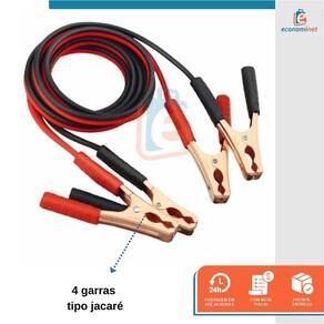 CARACTERÍSTICAS TÉCNICAS: Material: Cobre, pvc, garra de ferro Medidas: 2,5 metros Capacidade: 100A Voltagem: 12V Material isolado 4 garras modelo jacaré Cabo vermelho positivo isolado Cabo preto negativo isolado Marca: Starfer Ref.: 6092152