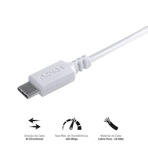Dados Técnicos:1 metro Bi-DirecionalTaxa Máx. De Transferência: 480 Mpbs Material do Cabo: Cobre Puro 28 AWGCorrente Máxima: 5V 3A 15W Compatível com: LG Note+, Q7+LG V35 ThinQLG G6, G7 ThinQ, G8S ThinQMotorola X4Motorola Linha Z: Z2 ou superiorMotorola Linha G: G6 ou superior Motorola OneAsus Zenfone 5Samsung Linha Galaxy A5 ou superior, S8 ou superior e Note 8 ou superiorXiaomi Linha : Note 7 ou superiorXiaomi Linha Mi: 5 ou superiorXiaomi Mi A3Entre outros modelos Homologação Anatel: 026291909185 Ean: 7908020913054