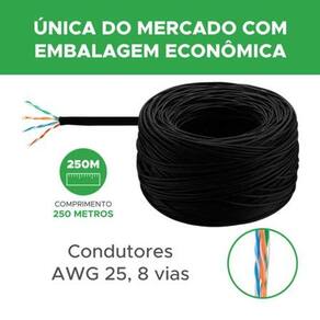 Fácil instalação: o cabo vem em uma prática caixa de 250 metros, facilitando o manuseio e a organização durante a instalação.