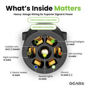 Este chicote inclui sete fios codificados por cores feitos de cobre condutor, cada um revestido com isolamento flexível e durável em PVC que protege contra desgaste e danos ambientais. A construção à prova de intempéries do cabo e do plugue aumenta a durabilidade, tornando-o adequado para uso externo e prolongando a vida útil do sistema elétrico do seu reboque.