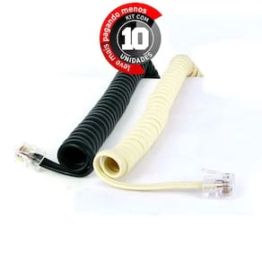 Cabo Para Telefonia Espiral Branco - 2 Metros - Kit Com 10 Com o Cabo para Telefonia Espiral - 2 m - você pode ligar a base ao fone com mais comodidade. Ideal para escritório e pontos de atendimento. Para esse Kit, disponível na cor branca, o cabo de qualidade superior já vem montado com os conectores RJ9 e pronto para o uso. Pode ser passado por tubulações e conduítes.