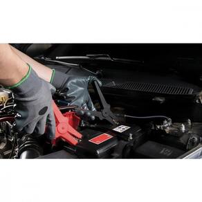 Cabos de cobre de 9 mm de diâmetro revestidos com PVC.Garras tipo jacaré em cobre revestidas em TPR.Capacidade: 300 amperes.Comprimento: 3 m.Prático e versátil.Garras tipo jacaré para melhor fixação na bateria. Cabos em cores diferentes para melhor visualização e segurança durante a operação. As ferramentas são produzidas e testadas conforme requisitos internos de fabricação esegurança.
