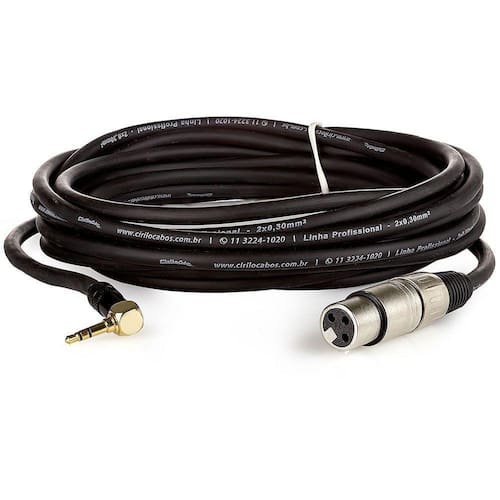 Composto por um conector XLR Fêmea e uma ponta P2 90 Macho. O ângulo de 90 graus é ideal para casos em que o aparelho está em espaço estreito ou muito próximo à parede. A angulação protege o cabo de uma dobra forçada que comprometeria sua durabilidade e segurança.
