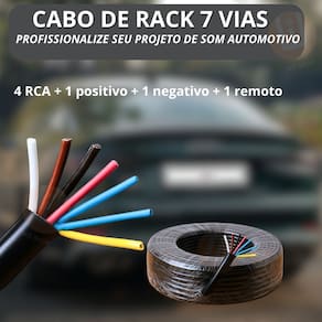 Cabo Rack Movel Paredão Qualidade Malha de Blindagem 100% Cobre Anti Ruído 4 RCA 7 Vias Remoto Positivo e Negativo 20M