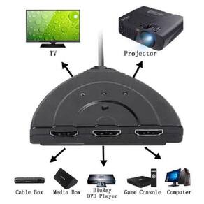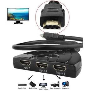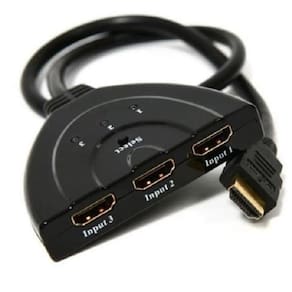 Hub Switch Hdmi 1x3 Com Rabicho Ideal Para Quem Quer Utilizar Vários Aparelhos Hdmi Em Uma Única Entrada Hdmi Da Sua Tv. Neste Switch Você Pode Ligar Até Três Aparelhos Via Hdmi, E Ocupa Apenas Uma Entrada Na Sua Tv, Ou Monitor. Com Chave Seletora Poderá Escolher Qual Aparelho Você Quer Ter A Imagem Na Tela. O melhor do aparelho Switch HDMI, ótimo para descomplicar situações com TV's ou Monitores com uma entrada só de HDMI, esse aparelho possibilita a entrada de qualquer aparelho que transmita imagem, Computador, Notebook, DVD Player, Vídeo Game em até 3 conexões HDMI, e 1 saída conexão HDMI para qualquer monitor ou TV.