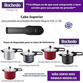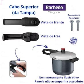 Nosso empenho é procurar o que há de mais atual e funcional no mundo culinário e para organização da sua casa, priorizando sempre a qualidade e a versatilidade dos produtos. Cabo superior para panela rochedo segura 4,5l e 7,6l Cabo superior da panela rochedo segura 4,5 / 7,6 litros. O cabo é antitérmico que garante ainda mais segurança durante o uso, pois reduzem a propagação do calor. Acompanham os dois parafusos para fixar na panela. Atenção: não acompanha cabo inferior, alças, válvula de segurança e pino. Somente o cabo superior. Serve nos modelos: Rochedo segura 4,5l Polida Vermelha Grafite Stone pro Rochedo segura 7,6l Vermelha Não serve nos demais modelos. Conteúdo da embalagem: 1 cabo superior panela rochedo segura Gostou Esse produto pode ser seu aguardamos sua compra Marca: Não Informado Ean: 7898749650937
