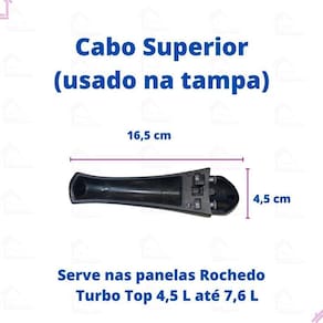 Esse cabo é compatível com os modelos de panela Rochedo Turbo Top polida e revestida, nas capacidades de 4,5L e 7,6L.