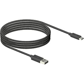 Conecte seus dispositivos USB-C a carregadores e computadores com porta USB-A padrão usando este cabo de 1.5 metro com malha de nylon. O comprimento estendido oferece mais conveniência para usar o aparelho enquanto carrega, e o revestimento trançado garante uma durabilidade muito maior em comparação com cabos comuns de plástico.