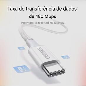 Cabo usb c ugreen de carregamento rápido pd 3.0 100w, tipo c, compatível com/macbook/air,/dell,/,//16/15/plus/pro/max,/galaxy s25 ultra s24 s23,/pixel/9/8,/etc. 2m Carregamento rápido de 100w o cabo ugreen usb c para usb c suporta carregamento rápido pd3.0, scp e pps de 45w e fornece energia de até 100w 5a/20v . Leva apenas 30 minutos para carregar/o//pro/2024 a 50%, e até mesmo o /16/pode ser carregado a 50% em apenas 30 minutos. Ampla compatibilidade o cabo ugreen usb c é compatível com a maioria dos dispositivos usb c, como /16/16/plus/16/pro/max/16/pro/15/15/plus/15/pro/15/pro/max,/macbook/pro/air,/dell,//pro/2024/2023,//air/6/5,/galaxy s25/s25+/s25 ultra/s24/s23,/pixel/9/8/7,/huawei/p60/mate,/60, etc. Transferência rápida a velocidade máxima de transmissão teoricamente alcançável é de até 480 mbps. Leva apenas alguns segundos para transferir um arquivo entre o seu pc e o disco rígido. Observação: não é suportado para conexão com monitor e não é suportado para espelhamento de tela. Seguro e confiável o cabo usb tipo c ugreen adota o chip inteligente e-marker, identifica e fornece automaticamente a corrente necessária do dispositivo, evitando danos durante o carregamento. Durável e sem emaranhados o cabo de dados é revestido em nylon, bem feito e durável, com ótimo acabamento nos conectores, protege contra rasgos e dobras, não cria nós quando você o coloca na bolsa. Este cabo usb c é compatível com as/séries//16/15 Sim, ele não é compatível apenas com as/séries//16/15, mas também com as/séries/macbook/e/. Um único cabo para conectar facilmente seus diferentes dispositivos. Ele é compatível com as séries/galaxy de carregamento super rápido de 25w e de carregamento super rápido de 45w Sim, ele suporta carregamento super rápido de 25w e carregamento super rápido de 45w 2.0 da série/galaxy. Este cabo usb c para usb c suporta saída de vídeo Não, este cabo usb c para usb c não suporta saída de vídeo, ele suporta carregamento de até 100w e transferência de dados de 480 mbps. -marca ugreen -modelo 100w 5a/20v -cor branco -tamanho / comprimento 2 metros -material nylon trançado