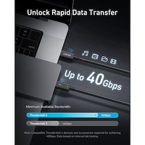 - O que você recebe: Cabo Anker Thunderbolt 4 (2 pés, 240 W, 40 Gbps), guia de boas-vindas, garantia de 18 meses e nosso atendimento ao cliente amigável.
