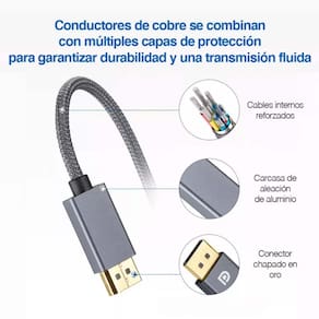 Cabo de alta velocidade USB-C para DisplayPort, banhado a ouro. Revestimento longo de 2 metros: nylon trançado (alta durabilidade) Suporta uma taxa de atualização de 240 Hz com uma resolução de 1080p (1920* 1080) - 165 Hz com uma resolução de 2K (2560* 1440) - 120 Hz com uma resolução de 2K Ultra Wide (3440* 1440) - 60 Hz com resolução de 4K @ Não entra em conflito com o PIN 20 (como a maioria dos cabos) - Este cabo foi projetado para atende aos padrões VESA, especificando que os cabos passivos de DisplayPort para DisplayPort devem deixar o pino 20 desconectado. - A taxa de atualização do cabo Idea para jogos e vídeos de 2K a 165 Hz reduz a oscilação para proporcionar uma experiência de jogo realmente confortável. -- Conectores próprios banhados a ouro 24K não embotam nem diminuem a condutividade com o tempo de uso. -- Suporta HDR, 3D, cores profundas de 8 bits, imagens nítidas e de 10 bits. Classificação HBR2, atende às especificações da versão 1.2