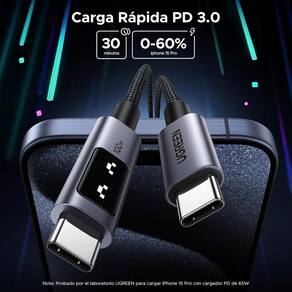 Cabo Usb-C Para Usb C Pd 100W Carregamento Rápido Pps Display