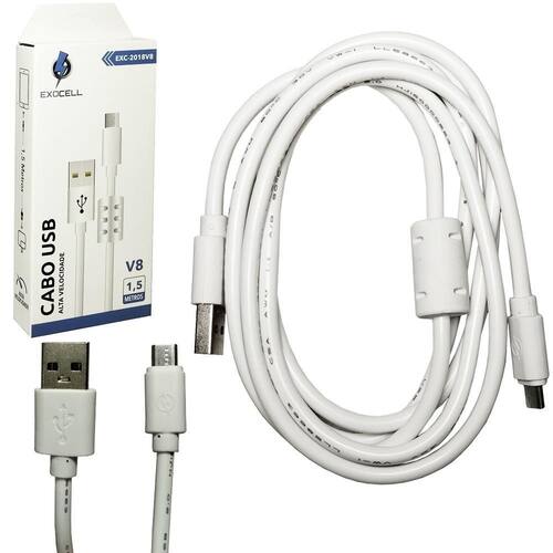 Cabo USB V8 Turbo de 1,5 metros, ideal para carregamento rápido e transferência de dados. Compatível com smartphones, tablets, caixas de som, fones e outros eletrônicos com entrada Micro USB V8. Material reforçado, flexível, resistente ao desgaste e tecnologia anti-nós.Tipo