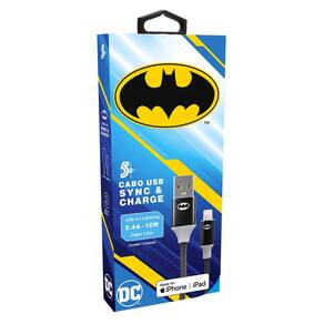 Características: - Marca do Produto: 5+ - Modelo: SYNC&CHARGE Especificações: - Conectores: USB A e Lightning. - Corrente: 2.4A. - Potência Elétrica: 12W. - Tamanho do Cabo: 1,5 Metro. - Dimensões: 2,50 x 8,00 x 20,00 cm. - Peso: 0,07 Kg. Conectores personalizados em alumínio na cor preta, oferecem resistência e durabilidade. Cabos revestidos em tecido especial trançado para mais proteção sem perder a flexibilidade. Ean: 7899744081474
