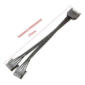 Entradas: 1 conector SATA macho Saídas: 2 conectores Molex fêmea Comprimento: Aproximadamente 30 cm varia de acordo com o modelo Cor do cabo: Preto Material do cabo: PVC de alta qualidade Vantagens: