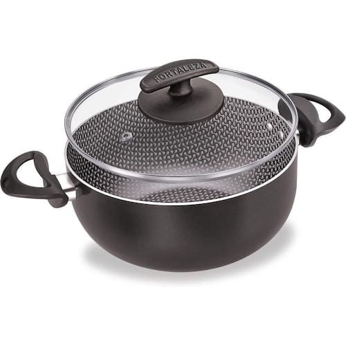 A caçarola Gran Chef Black com tampa da Fortaleza é a opção ideal para quem busca qualidade, praticidade e estilo na cozinha. Com 20 cm de diâmetro, ela oferece o tamanho perfeito para preparar porções menores de sopas, ensopados, carnes e outros pratos deliciosos.