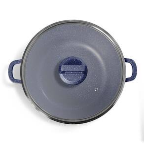 Instruções para o uso correto da linha Moda do Chef Graniflon:Cura das panelas:1 – Antes do primeiro uso, unte a superfície interna com óleo/gordura e aqueça-a em fogo alto por 2 a 3 minutos. Após, desligue o fogo e espere esfriar. Repita essa operação sempre que desejar um melhor desempenho antiaderente.2 - Após esfriar, lave-a com esponja macia e detergente neutro em água morna. Enxágue para proteger o revestimento.3- A sua panela está pronta pra uso, repita esse processo pelo menos a cada três meses para proteger o revestimento. Recomendações:Para um melhor desempenho e durabilidade do antiaderente, use sempre um fio de óleo ou azeite.Nunca usa uma chama muito alta e forte, pois pode danificar a pinturaUse sempre utensílios de silicone, nylon ou madeira, para não danificar a pintura.Nunca deixe a panela vazia (sem alimentos) sobre uma fonte de calor por mais de 1 minuto, isso pode danificar o revestimento.Para a limpeza, sempre use sabão neutro e esponja não abrasiva. Utilize água quente e bicarbonato de sódio para remição de odores e resíduos mais persistentes. Informações técnicas:Ref.: MC0003Material: revestimento antiaderente premium GraniflonPeso (KG): 1,59kgCxLxA: 28x28x12cmCapacidade: 4,4LCor: AzulMarca: Moda do ChefFabricante: Marcamix - Utilidades Gourmet