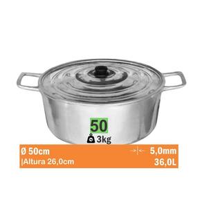 Panela em alumínio batido Jalice um produto de qualidade e durabilidade para você preparar uma deliciosa feijoada ou aquele Frango caipira especial. Os produtos Jalice tem ótimo acabamento como polimento que deixam a panela sem rebarbas ou defeitos de acabamento. Essa panela tem 50 cm de diâmetro, 26 cm de altura e espessura de 5 milímetros super reforçada