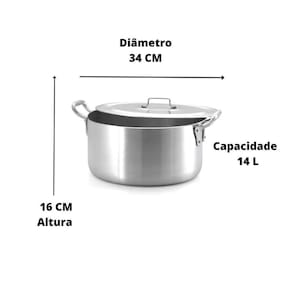 Com capacidade para 14 litros, essa caçarola é perfeita para preparar grandes quantidades de alimentos, seja para festas, eventos ou para o dia a dia.