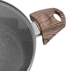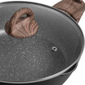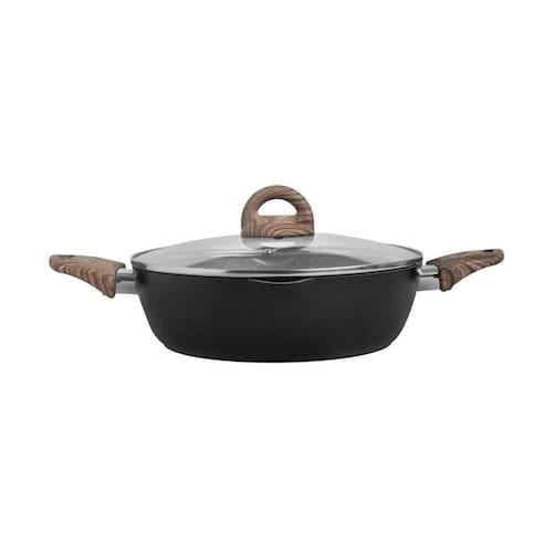 A Caçarola Baixa com Tampa Jungle Black é um modelo de versatilidade e estilo na cozinha! Útil para cozimentos lentos, como ensopados e guisados, prepara com maestria outros alimentos como carnes, legumes, massas e muito mais. Sua estrutura em alumínio promove eficiência na distribuição do calor, enquanto o revestimento antiaderente não deixa o alimento grudar. A caçarola possui alças em baquelite antitérmico, mantendo as mãos protegidas do calor. Além disso, acompanha uma tampa de vidro temperado com borda de aço inox e saída de vapor.