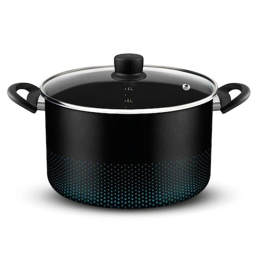 Caçarola caldeirão de 24cm com revestimento interno profissional, um antiaderente de alta performance, que permite cozinhar facilmente sem óleo.