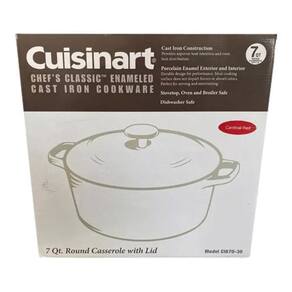 MaterialFerro fundido MarcaCuisinart CorVermelho Cardeal Tipo de acabamentoPintado FormaRedondo Capacidade7 quartos 6,62 Litros Instruções de cuidados com o produtoSeguro para forno É seguro para lava-louçasNão Dimensões do produto38 cm P x 84,83 cm L x 85,09 cm A