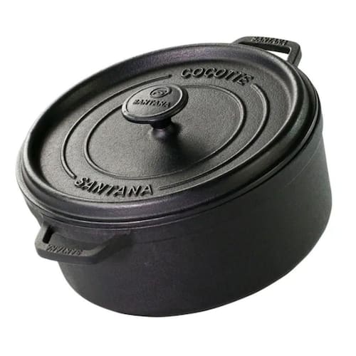 A Caçarola Cocotte Santana de duas alças é conhecida como o forno holandês e possui o diferencial de realizar com eficiência uma boa técnica de gotejamento, permitindo que os alimentos sejam preparados de forma assada ou frita lenta e uniformemente, conservando e valorizando ao máximo o seu sabor. A Caçarola Cocotte vem acompanhada por uma tampa de ferro, sendo esta mais pesada e com vedação perfeita, o que colabora para que a umidade presente na caçarola permaneça na mesma durante o preparo dos alimentos. Além disso, sua tampa também possibilita a armazenagem de brasas para que sejam preparados alimentos bem assados e dourados. Devido ao seu batoque de ferro, esta caçarola possui maior resistência ao calor, podendo ser utilizada em fogão ou forno. É ideal para o preparo de pães, tendo em vista que seu uso no forno mantém o calor irradiado de forma uniforme por toda a panela. Pode ser utilizada em todos os tipos de fogão desde a gás, como também a lenha, elétrico e também em cooktop de indução e inclusive em churrasqueiras. Os produtos Santana graças a sua superfície de ferro fundido de alta qualidade, possuem diversas vantagens como, a durabilidade, a contribuição para uma alimentação saudável, a economia de até 35% da fonte na hora de cozinhar, um cozimento uniforme do alimento mantendo a temperatura do mesmo por muito mais tempo e a transferência de porcentagens de ferro para o alimento. A estrutura da Caçarola Cocotte impede que o vapor escape, o que contribui para que seus alimentos sejam preparados com muito mais sabor. Ref.: 7000 Medidas: 24 x 12,4 x 34,2cm Peso: 4,95 kg Litragem: 3,8 L Marca: Não Informado Ean: 7898014152463