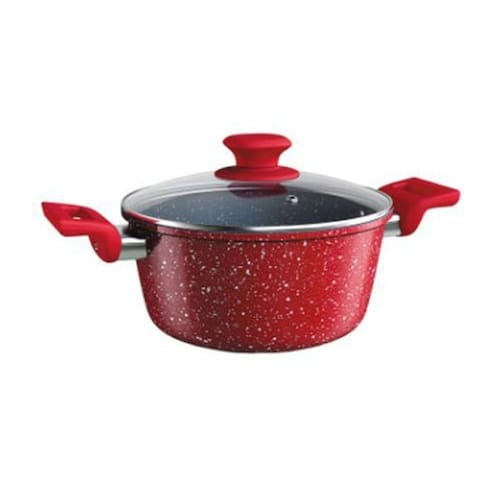 Caçarola Colorstone 4L Vermelha Euro HomeCom a Caçarola Colorstone você vai transformar seu jeito de cozinhar e seus pratos serão executados com excelência. A Caçarola Colorstone possui 5 camadas. A primeira camada é a antiaderente, ela evita que os ingredientes grudem mesmo com uso de pouquíssimo óleo. Para garantir sua durabilidade, há uma segunda camada antidesgaste. A camada de alumínio cumpre a função de distribuir o calor do melhor modo possível, dimuindo o tempo de preparo das refeições. A quarta camada é a pintura ultraresistente, e a base de indução finaliza essa composição. A Colorstone é fácil de limpar, não deforma e estará sempre pronta para o próximo uso. Prepare refeições mais saborosas e saudáveis com as panelas Colorstone.Especificações Técnicas:- Modelo: Colorstone - Marca: Euro home - Cor: Vermelho- Peso produto: 1.73 kg- Dimensões do produto: 24 x 36,50 x 17,3 cm- Material/Composição: Alumínio / Ptfe / Baquelite / Vidro / Aço inox / Pintura - Quantidade de peças: 2 caçarola 22 cm - 4 l- Garantia: 4 meses
