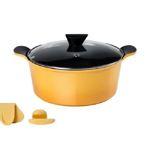 Caçarola Com Revestimento Cerâmico - 20 Cm - 2,4 L - Cor: Amarelo - Pegador de silicone incluso