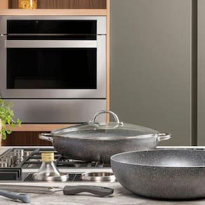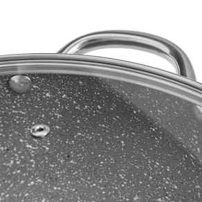 A Caçarola com Tampa Big Family é um modelo de versatilidade e estilo na cozinha! Útil para cozimentos lentos, como ensopados e guisados, prepara com maestria carnes, legumes, massas e muito mais. Sua estrutura em alumínio cozinha por igual, de forma rápida e eficiente. A comida não gruda e a limpeza é facilitada pelo revestimento antiaderente e multicamadas, livre de PFOA. A caçarola conta ainda com alça e pomel em aço inox rebitado e tampa de vidro temperado com saída para vapor.