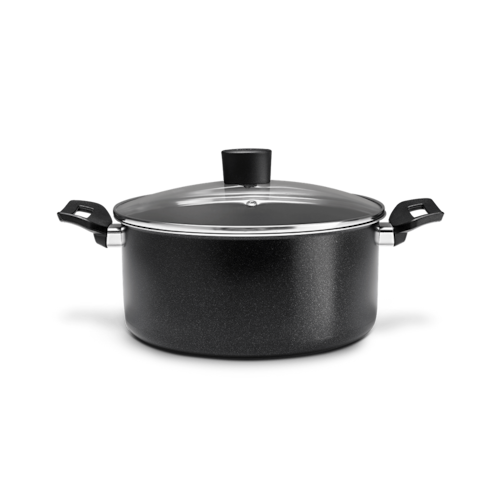 Prática e segura, a caçarola com tampa da linha Ebony, de 22x10cm com capacidade de 3,4 litros, tem estrutura de alumínio que dissipa melhor o calor cozinhando o alimento por igual e mais rapidamente. Já o revestimento interno antiaderente não deixa o alimento grudar mesmo com uso reduzido de óleo. O material também facilita a limpeza. A tampa é de vidro temperado e possui saída para o vapor. Com alças de baquelite, material que não aquece, o manuseio do utensílio fica mais fácil e seguro. A pintura externa preta, trazendo maior versatilidade e sobriedade para a sua cozinha._x000D_