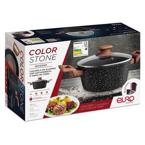 A Caçarola com Tampa ColorStone Wooden 20?cm da Euro Home é ideal para quem busca praticidade, segurança e beleza na cozinha. Com revestimento antiaderente de 5 camadas, livre de PFOA e metais pesados, ela evita que os alimentos grudem e facilita a limpeza. Possui tampa de vidro com saída de vapor, alças Soft Touch que não esquentam e base compatível com todos os tipos de fogão, inclusive indução. Com capacidade de aproximadamente 2,7 litros, é perfeita para preparar ensopados, massas, arroz e muito mais, unindo eficiência e um toque de sofisticação.