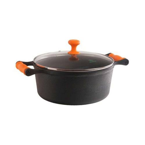 01 Caçarola Ferro Alça Silicone Laranja Tampa Vidro 1l 16cm