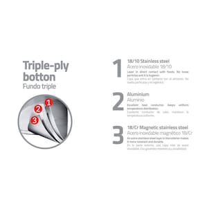 Totalmente feita em aço inox, por isso não solta nenhum resíduo nos alimentos, mantendo-os saudáveis. Altamente durável, mantém as características originais, preservando a beleza, a higiene e a durabilidade do material. O fundo triplo (aço inox + alumínio + aço inox) distribui o calor uniformemente, proporcionando um cozimento mais rápido e uniforme, economizando energia e deixando os alimentos aquecidos por mais tempo.Possui design diferenciado e moderno, com acabamento em alto brilho. Desenho limpo e sem cantos torna a limpeza mais fácil. Cabos, alças e pegadores em baquelite, não aquecem. Cabos e alças com protetor de chamas, evitando que queimem quando a chama não estiver centralizada no fundo da caçarola. Tampa com saída de vapor e encaixe perfeito. Pode ser lavada diariamente na máquina de lavar louças.Pode ser utilizada nos fogões: gás, elétrico, vitrocerâmico e indução. Orientações Material: aço inox.Alças e pegador de baquelite antitérmico.Produto com fundo triplo (aço inox + alumínio + aço inox). Observações Antes de utilizar o produto, remover as eventuais etiquetas e lavar com água quente e detergente. Use uma fonte de calor brando para evitar que o alimento grude no fundo da caçarola. O fundo triplo distribui uniformemente o calor, não sendo necessário o fogo alto. E, além disso, você economiza energia. Quando a caçarola for utilizada no fogão a gás, a chama não deve ultrapassar a base da caçarola. No caso de uso de chapa elétrica, a chapa deverá ter diâmetro igual ou inferior ao da caçarola. Sempre dissolva o sal em água fervendo ou com os alimentos, mexendo os ingredientes no início do cozimento. Não aqueça o alimento colocando uma caçarola do mesmo diâmetro sobre a outra. Esse procedimento é perigoso, pois cria vácuo e impossibilita a retirada do mesma. Se a tampa da caçarola de aço inox Tramontina ficar presa pelo efeito do vácuo durante o resfriamento, basta puxar ou aquecer novamente até neutralizar o efeito do vácuo. As alças de inox aquecem durante o cozimento. Aconselhamos o uso de luvas durante o manuseio. Alguns alimentos que possuem amido, como massa e arroz, poderão deixar manchas na parte interna da caçarola durante o cozimento. Para remover facilmente as manchas, passe um pano umedecido com suco de limão ou vinagre, ou use a Pasta para Polir e Remover Manchas Tramontina. Evite deixar alimento na caçarola por muito tempo; o sal também pode provocar manchas. Para que a caçarola de aço inox fique sempre bonita e com brilho, recomendamos que seja lavada somente com detergente e esponja. A Tramontina desenvolveu uma pasta especial para polir e remover manchas nos produtos de aço inoxidável, que está disponível nos principais pontos de venda. Depois da lavagem, sempre que possível, enxágue a caçarola com água quente e seque-a imediatamente, para que ela mantenha o brilho original, pois o cloro e as substâncias contidas na água podem deixar manchas na caçarola. Não deixe a caçarola vazia sobre uma fonte de calor. Deixe caçarolas quentes somente em superfícies resistentes ao calor. Características Gerais EAN13 7891116067789 DUN14 17891116067786 NCM 7323.93.00 Peso Líquido 1,0550 kg. Peso Bruto 1,0550 kg. Metragem 0,012510 m³. Dimensões Embalagem (Compr. X Larg. X Alt.) 330x 223x 170 mm. Dimensões Produto (Compr. X Larg. X Alt.) 275x 222x 165 mm. Diâmetro 20,0 cm. Capacidade 3,10 l. Espessura 0,5 mm.