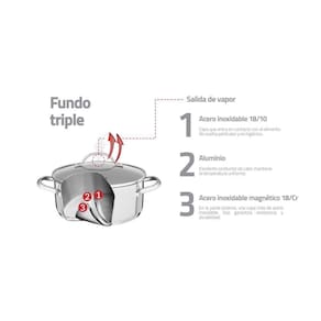 Economiza tempo e energia: o segredo está no fundo triplo (aço inox alumínio aço inox), que distribui o calor uniformemente, proporcionando um cozimento mais rápido. Por isso, você pode manter o fogo baixo durante todo o preparo e, assim, poupar energia.