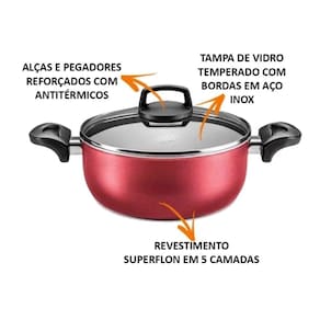A caçarola Antiaderente Superflon MTA, 1.2 mm com Tampa de Vidro é escolha ideial para garantir maior qualidade e durabilidade quando o assunto é versatilidade na cozinha. Produzido em alumínio com revestimento interno e externo em antiaderente Superflon, suas 5 camadas de aplicação proporcionam um cozimento rápido e uniforme e evitando que os mesmos grudem em sua superfície, tornando-os mais fácil de limpar. Suas alças são rebitadas e em baquelite antitérmico proporcionando uma utilização mais confortável e segura, pois reduzem a propagação de calor. Sua tampa é de vidro temperado com saída de vapor e facilita a visualização das receitas durante o preparo. Além disso, a caçarola é muito resistente e pode ser utilizada em fogão a gás, elétrico e vitrocerâmico (resistência elétrica) e levado à máquina de lavar louças. A escolha perfeita para uma experiência leve e eficaz na cozinha.