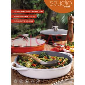 Caçarola Baixa Hercules Indução Antiaderente Cerâmico Tampa de Vidro - 3,5 Litros