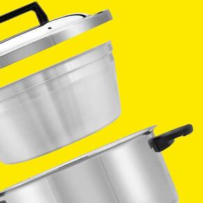 A Caçarola meia pressão em alumínio polido Ramos possui corpo em liga de alumínio com espessura de 1,5 mm. Portanto, promove um cozimento mais rápido e uniforme.