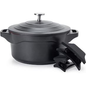 Caçarola Premier Black 28cm Ceramico - Le Cook Perfeita para fazer cozidos e assados e também criada para assar pães e bolos, diretamente na boca do fogão. Sua PARTE EXTERNA é feita de alumínio de grande espessura e alta densidade melhor condução térmica e rápida indução e com fundo resistente para ser utilizada em todos os tipos de fogões: elétrico, a gás, forno, vitrocerâmico e indução.
