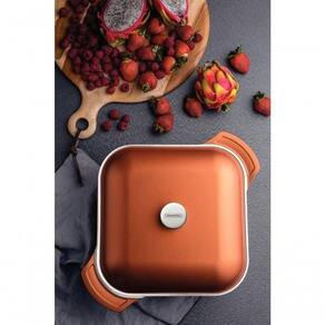 - Corpo de alumínio forjado com espessura de 8 mm;- Tampa de alumínio com espessura de 4,5 mm;- Revestimento interno de antiaderente Starflon High Performance;- Revestimento externo de silicone;- Alças em alumínio forjado e pegador de aço inox;- Pode ir à máquina de lavar louças, porém, para maior durabilidade do produto, indicamos lavar manualmente.- Foto meramente ilustrativa.