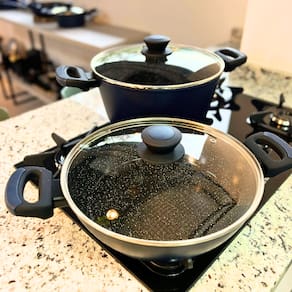 Durabilidade Superior: Com revestimento cerâmico antiaderente de três camadas, livre de PFOA e PFAS, oferece excelente desempenho. Para preservar sua panela, siga as orientações: