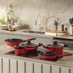 Caçarola Rasa Everyday 28 cm 4,2 L Vermelha em Alumínio Forjado com Revestimento Antiaderente Indução OxfordPanelas Everyday da Oxford, mais saúde e praticidade no seu dia a dia! A linha Everyday apresenta caçarolas, frigideiras e panelas feitas em alumínio forjado, um material leve e resistente que distribui o calor de maneira uniforme na hora de cozinhar. O revestimento cerâmico antiaderente permite o preparo de refeições sem o uso de óleo ou ser for o caso, usando o mínimo de óleo ou manteiga apenas para agregar sabor a receita. Além de proporcionar o preparo de alimentos mais saudável, as 3 camadas de revestimento antiaderente são muito mais resistentes, ou seja, sua panela terá uma vida útil bem mais longa. Por ser atóxico, o revestimento cerâmico não libera nenhum tipo de substância durante o uso das panelas. A linha oferece mais praticidade no dia a dia com peças aptas para uso em fogão de indução e outros cinco tipos, panelas com design moderno e funcional nas cores vermelho e azul que complementam a decoração da cozinha. Panelas Everyday para uma vida cheia de sabor todos os dias.