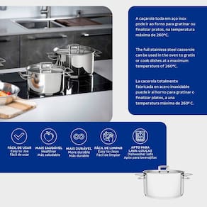 Pode ir ao forno?: Sim, para gratinar ou finalizar pratos na temperatura máxima de 260°C.