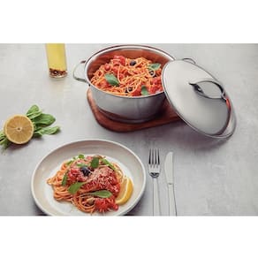 - Economiza tempo e energia: o segredo está no fundo triplo (aço inox + alumínio + aço inox), que distribui o calor uniformemente, proporcionando um cozimento mais rápido. Por isso, você pode manter o fogo baixo durante todo o preparo e, assim, poupar energia. Além disso, a caçarola toda em aço inox pode ir ao forno para gratinar ou finalizar pratos, na temperatura máxima de 260C.
