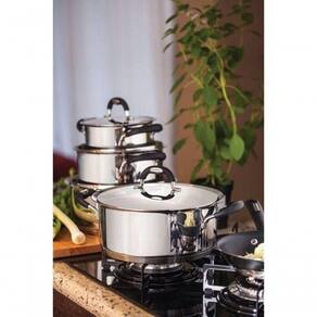 A Tramontina usa a mais alta tecnologia para produzir panelas de aço inox com fundo triplo. São duas camadas de aço inox envolvendo uma camada de alumínio. Dessa forma, o calor da chama se distribui por igual, deixando os alimentos muito mais macios e saborosos. Além disso a comida cozinha muito mais rápido, o que acaba gerando economia.