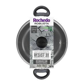 Caçarola Rochedo Robusta 24cm Grafite Grafite Linha Rochedo Robusta, com antiaderente Resist 3x que oferece maior robustez e qualidade. Reforcado com particulas minerais, dura mais. A Cacarola Rochedo Robusta Grafite 24cm ira surpreender sua familia com sua durabilidade e resistencia. Conheca todos os diferenciais dessa linha: Antiaderente Resist 3X: Robustez e Qualidade. Reforcado com particulas minerais, dura mais. Durabilidade e resistencia: Alta espessura para durar mais Base Limpa Facil: Nao mancha, nao gruda e e facil de limpar. Marcas de Medidas: Para facilitar o preparo Alem de contar com a qualidade da marca Rochedo, presente no Brasil ha mais de 100 anos, a Cacarola Rochedo Robusta Grafite 24cm e livre de substancias toxicas (PFOA), garantindo a seguranca no uso do produto. Pode ir em todos os tipos de fogoes, exceto inducao, compativel com maquina de lavar loucas. Especificacao tecnica: Modelo: Robusta. Cor: Grafite. Tipo de material: Aluminio. Fontes de calor: Todos, exceto inducao. Conteudo da embalagem: 1 Cacarola 24cm.